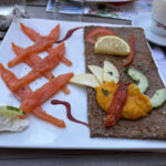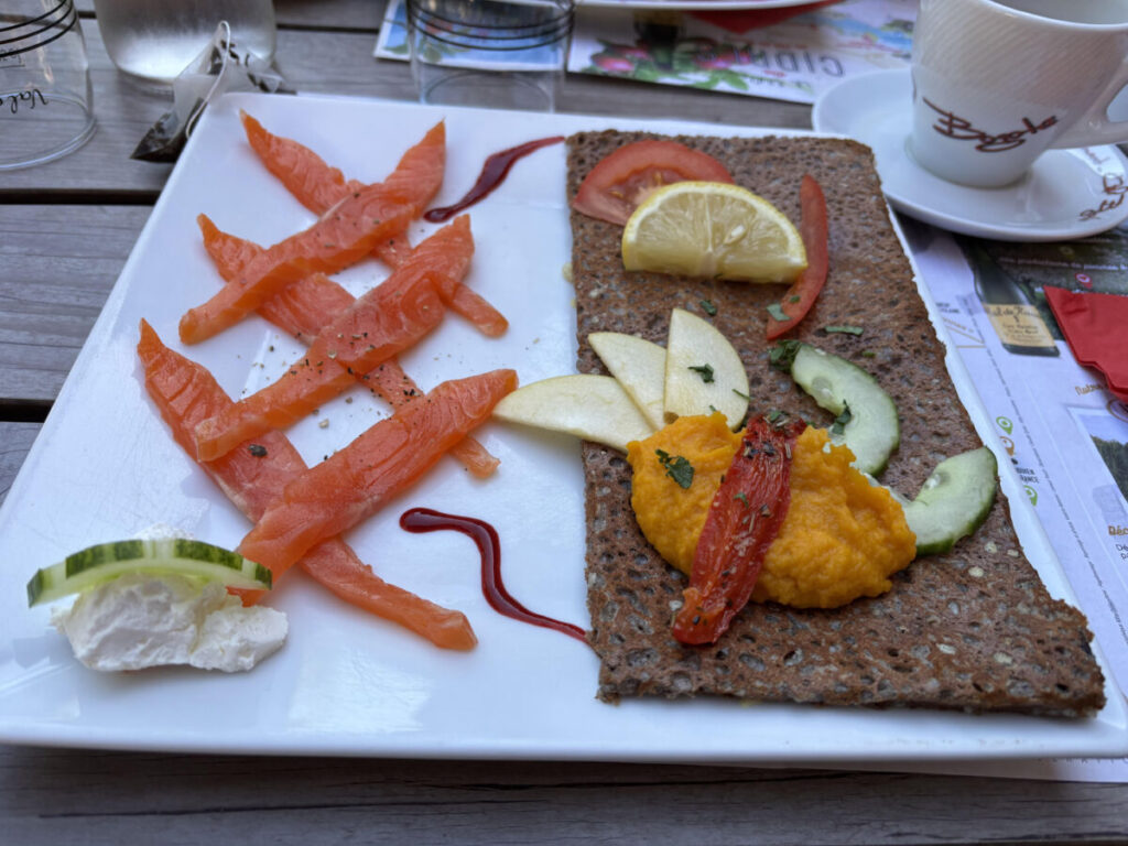 - Crêperie Chez Pierre et Collette, het typische Franse terras bevind zich tegenover de kerk.