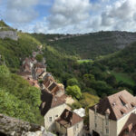 een klein dorp maar een groot panorama…..Het dorpje ligt op een rotsplateau en kijkt neer op de vallei van de Lot. Onderaan het rotsplateau woonden in de prehistorie, grotbewoners, daar zijn resten van gevonden. Ook zou hier Uxellodunum hebben gelegen, een Gallisch bolwerk in de tijd van de Romeinse verovering. Dit dorp zou dankzij de strategische ligging de laatste verzetshaard zijn geweest tegen de veroveringsdrift van Ceasar. Natuurlijk ontbreekt een kerk boven in deze burcht niet.